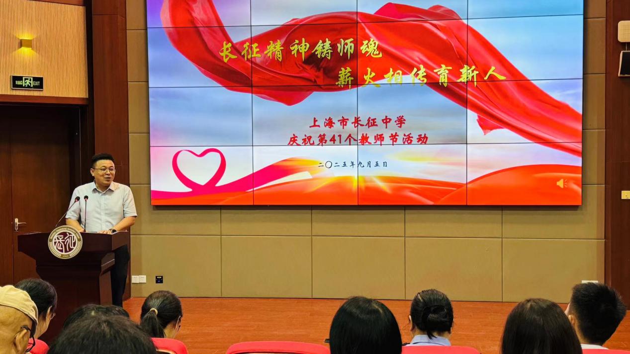 在这金秋送爽、硕果累累的美好时节,我们迎来了第41个教师节。为弘扬长征精神,传承教育薪火,上海市长征中学于2025年9月5日隆重举行了以“以教育家精神铸魂强师,谱写教育强国建设华章”为主题的庆祝活动。全校师生齐聚一堂,共同回顾过去一年的辉煌成就,展望未来的教育蓝图,以实际行动向辛勤耕耘在教育战线上的老师们致以崇高的敬意和节日的祝福。