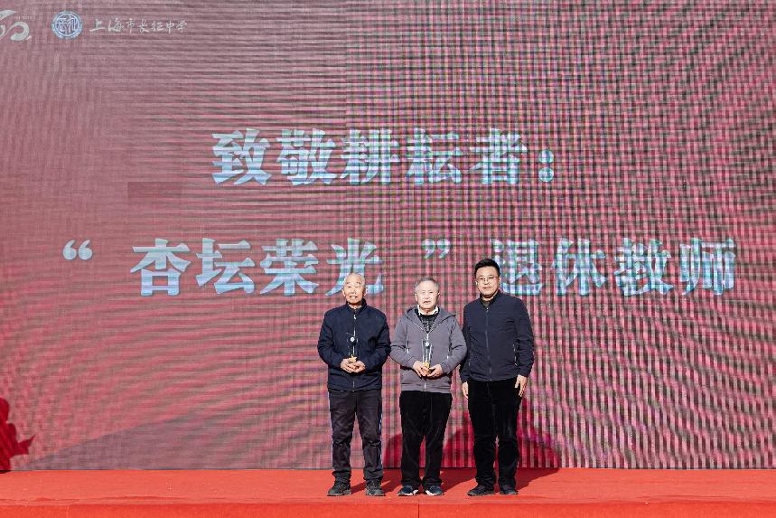 两位退休教师代表——深耕政治教学一线的王善生老师与默默守护校园运转数十载的陈罗德老师,获颁“杏坛荣光”荣誉奖杯。他们的坚守,诠释了何为“捧着一颗心来,不带半根草去”的师者大爱。