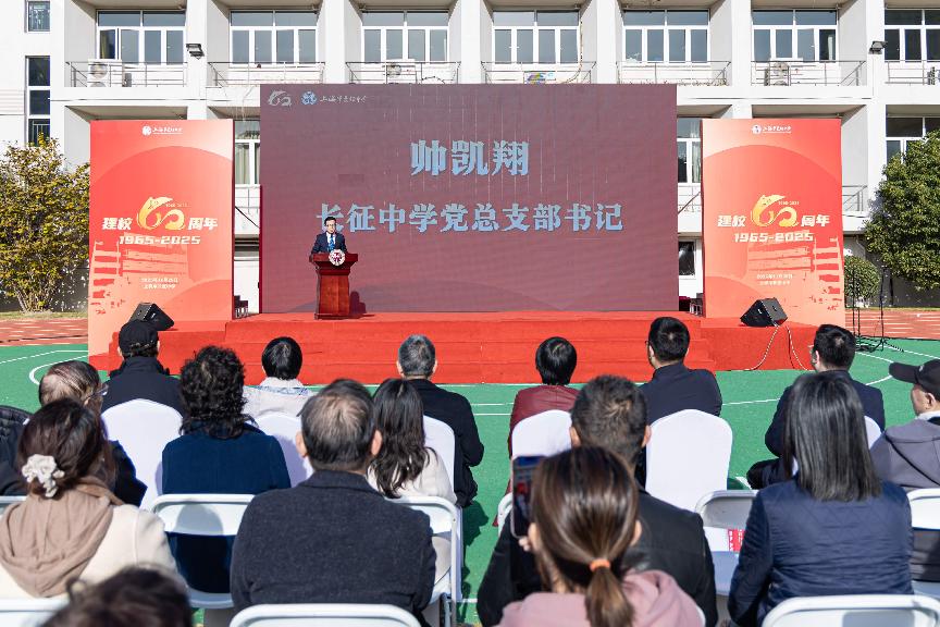 长征中学党总支书记帅凯翔在致辞中回顾了学校60年的发展历程,强调了匠心育人的传统与长征精神的传承。他表示新征程将以“培育红色工程匠师”为目标,深化红色教育、升级课程、加强师资配备,传承薪火、再谱华章。
