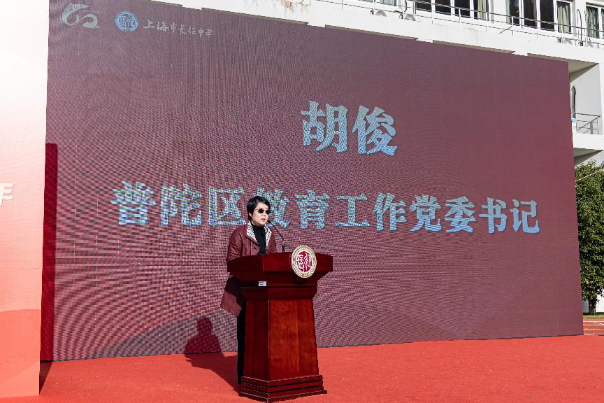 普陀区教育工作党委书记胡俊向学校致以热烈祝贺。她充分肯定长征中学扎根普陀、守正创新的办学成果,尤其赞赏其以“长征精神”铸魂育人、以“行走的思政课”启智润心的特色路径。她希望学校以六十周年为新起点,强化质量立校、师资强基、开放聚能,打造更具辨识度的教育品牌,为普陀教育高质量发展和上海教育现代化贡献更大力量。