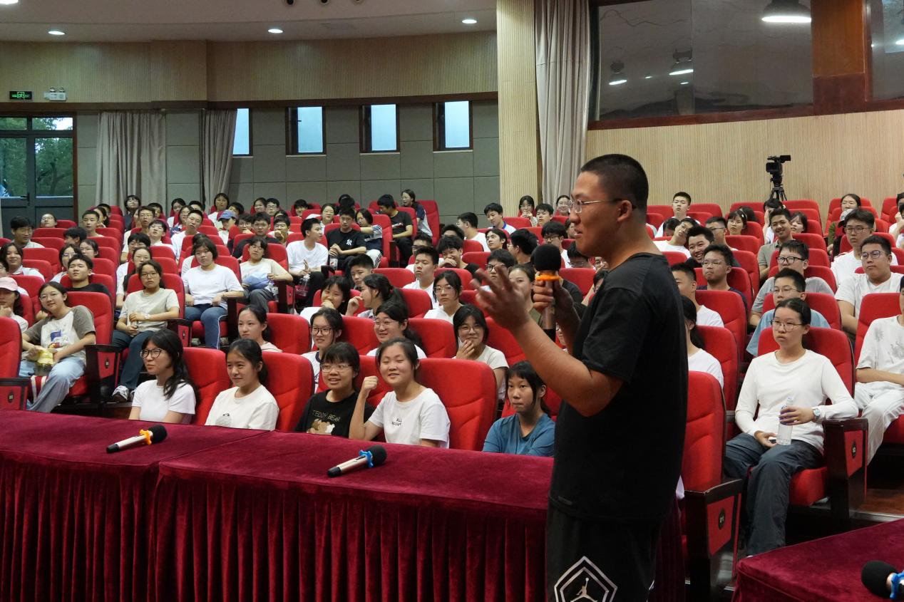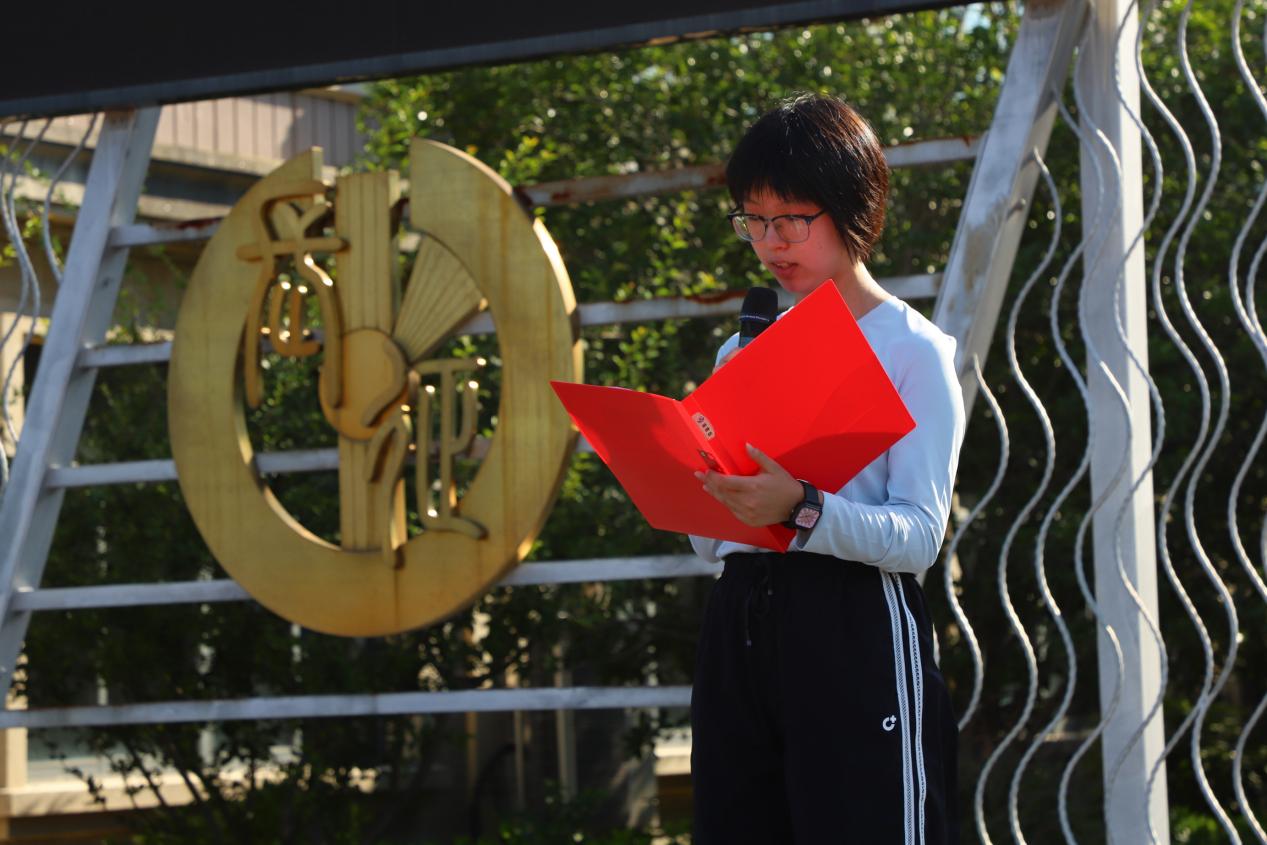 仪式由高一(2)班汪琪瑶和高一(5)班郭晋玮主持,高一(8)班高翼作为学生代表发言,她号召所有学生通过军训磨练意志,锻炼品质,成就梦想。校党总支书记帅凯翔精简有力地概括了军训这门“开学第一课”的重要意义:“军事训练不仅是对体能的考验,更是对精神的塑造。希望同学们能在严格训练中铸就钢铁意志,在并肩作战中学会团结合作,把‘不怕苦、不怕累’的精神融入未来的学习与生活。”