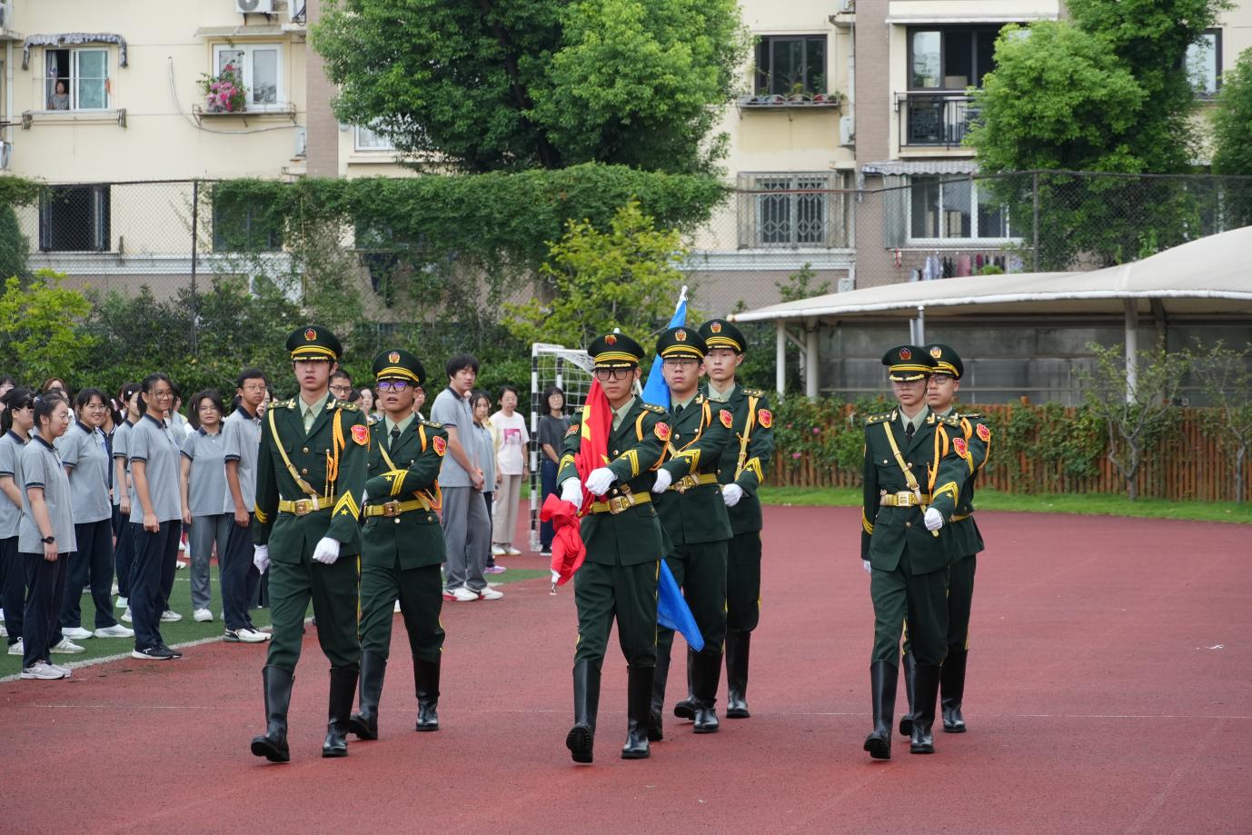 9月29日清晨,高中部“盛世华诞,家国同圆”主题升旗仪式在操场庄重举行,将“红色基因”注入双节序曲。