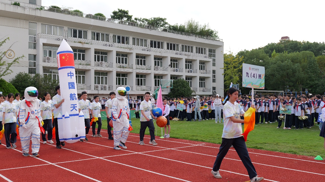 紧接着,六至九年级24个班级方阵依次登场,每个方阵都是青春最独特的注脚。 有的班级高举象征信仰的红旗,步伐铿锵传递红色精神;有的班级以特色运动为主题,将篮球、足球等元素融入表演,诠释对梦想的追求;还有的班级喊出嘹亮口号,挺拔的身姿尽显冲刺终点的决心……各班创意十足,用独特的方式展现着对运动的热爱与拼搏的信念。