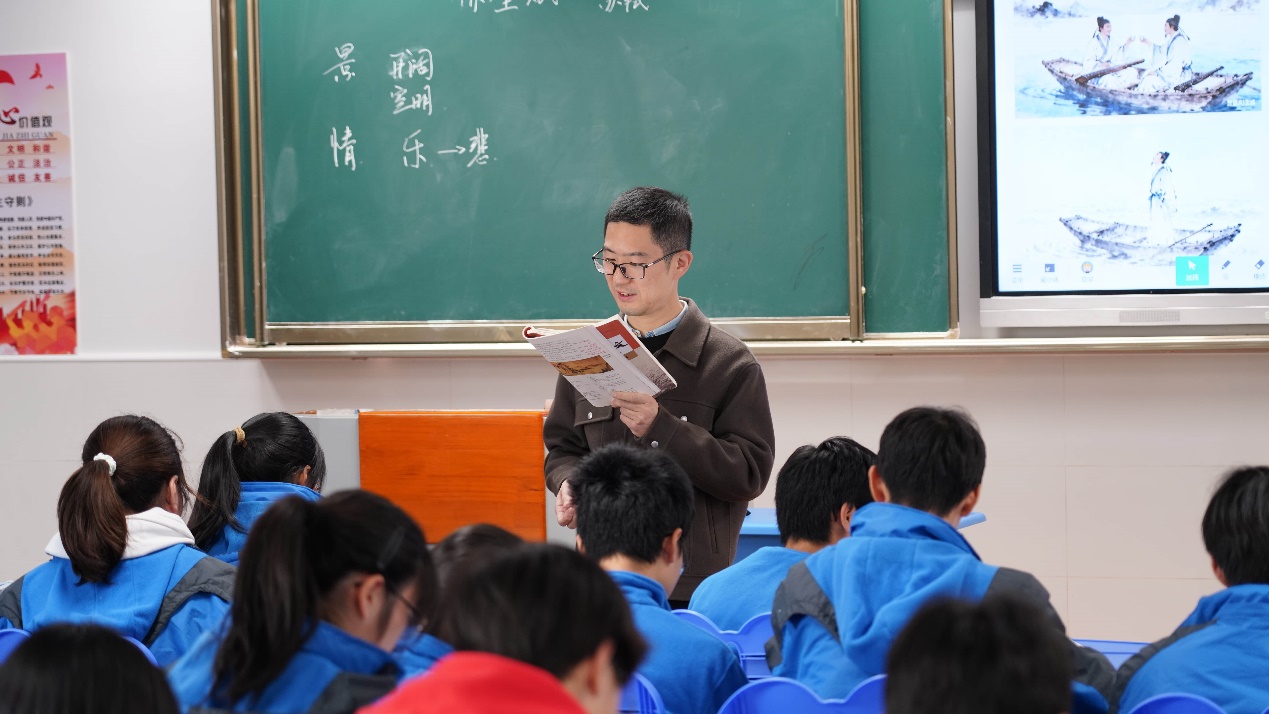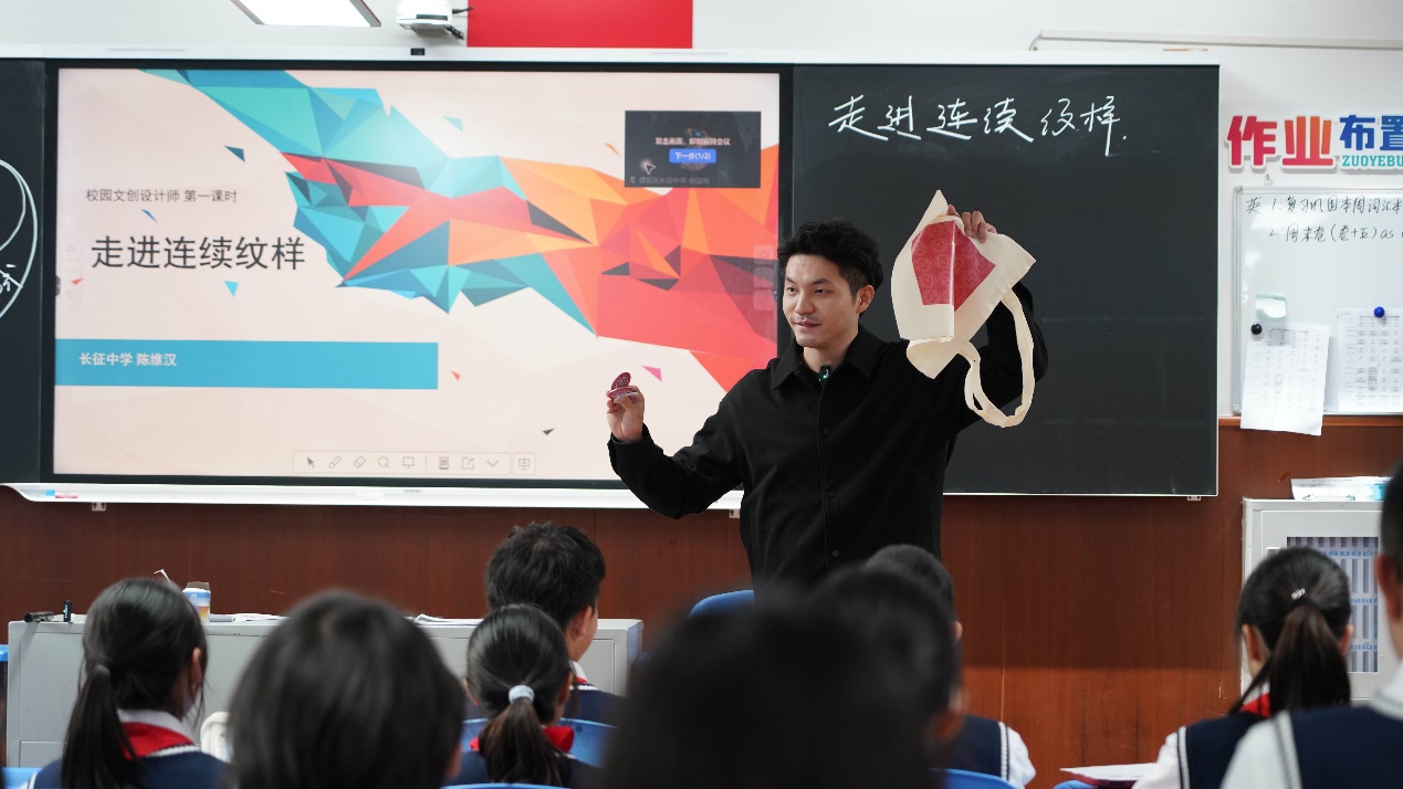 随着悠扬的上课铃声响起,两场精心打磨的教学展示同步开启,为出席嘉宾呈现了粉笔的厚重与AI的灵动。初中数学教师陈维汉带领学生走进《数学综合与实践——探秘连续纹样》的课堂。陈老师用粉笔勾勒出传统纹样的基本框架,又借助数字工具展现纹样的迭代演变,让学生在动手绘制与数字建模的互动中,感受数学之美与传统艺术的融合。高中语文教师宗捷以《赤壁赋》为题,用细腻的讲解勾勒出苏轼笔下的山水意境与人生哲思。黑板上的粉笔板书条理清晰,与多媒体课件中沉浸式的赤壁场景相得益彰,引导学生在古今对话中体悟经典文本的永恒魅力。两节课学科不同、风格各异,却共同诠释“变革中坚守初心,创新中回归育人”的教学理念。