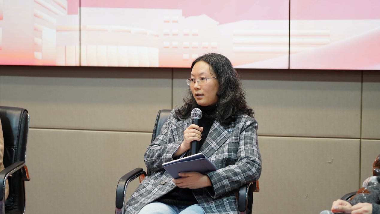 教学论坛环节由普陀区教育学院初中数学教研员叶青主持。学校初中数学教研组长金冉、高中语文教研组长程娟首先进行了说课,从课程设计理念出发,详解了两堂展示课如何平衡传统教学与数字技术,让学科核心素养在课堂中落地生根。
